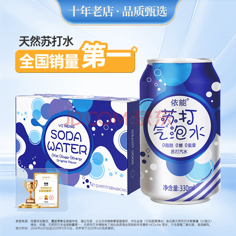 商品名称:依能 原味 苏打水汽水饮料 无糖气泡水 0卡0能量 330ml*24罐 整箱装