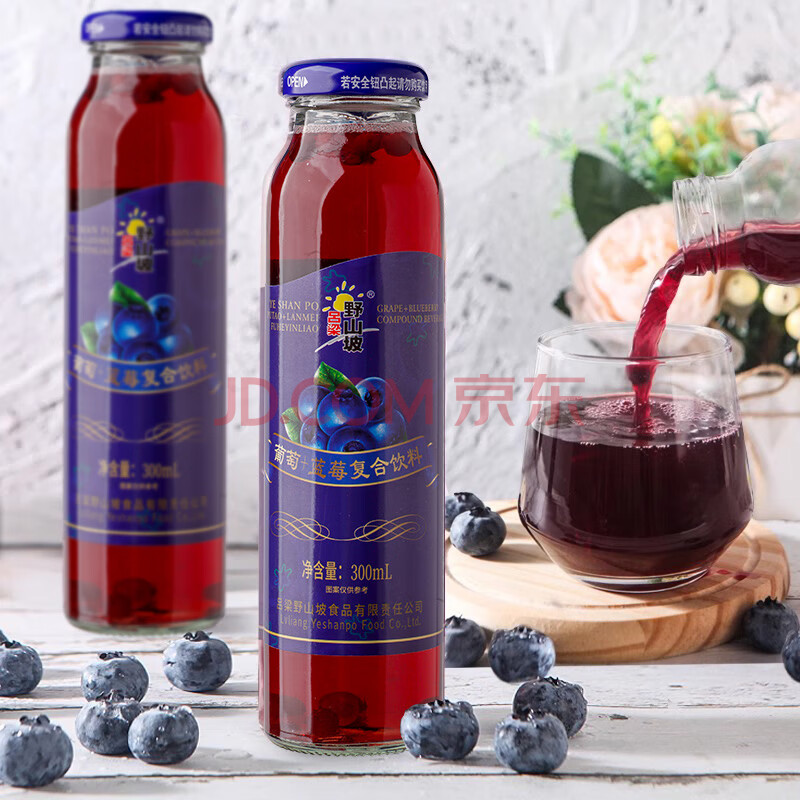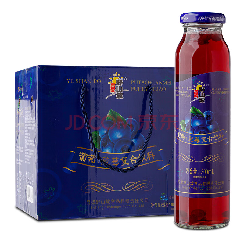 商品名称:吕梁野山坡葡萄+蓝莓复合果汁饮料 300ml*12瓶年货礼盒整箱装热门商品