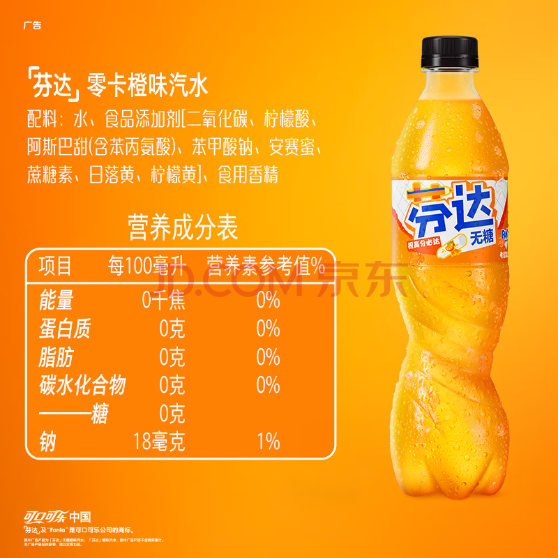 商品名称:可口可乐(Coca-Cola)芬达 Fanta 高考季 无糖零卡橙味汽水饮料500ml*12瓶 高分必达