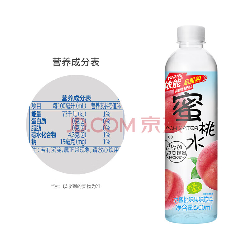 商品名称:依能 蜜桃水 添加蜂蜜 蜜桃味饮料 500ml*24瓶 塑膜量贩装
