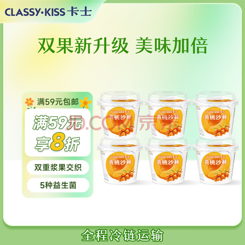 商品名称:卡士(CLASSY.KISS)黄桃沙棘果粒鲜酪乳100g*6杯 低温酸奶 风味发酵乳