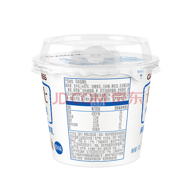 商品名称:卡士(CLASSY.KISS)3.3g原味鲜酪乳100g*6杯 低温酸奶 风味发酵乳