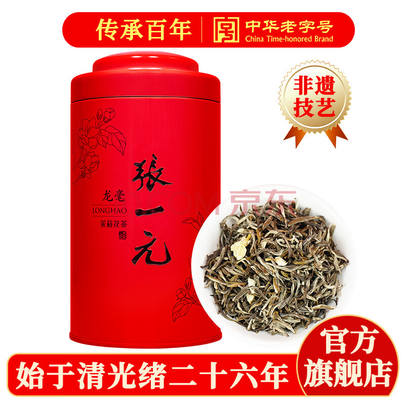 > 张一元茉莉花茶叶龙毫明前茶新春茶浓香型伴手礼茉莉绿茶特种100g礼盒装