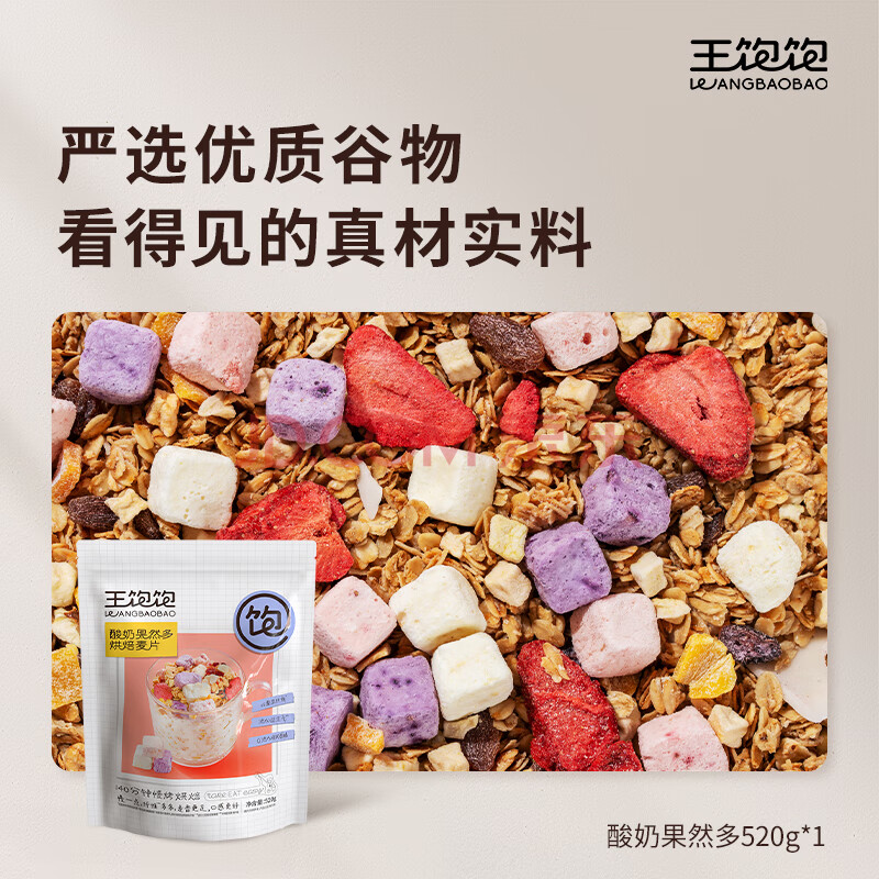 商品名称:王饱饱麦片早餐水果麦片即食燕麦片冲饮即食代餐速食酸奶果然多520g