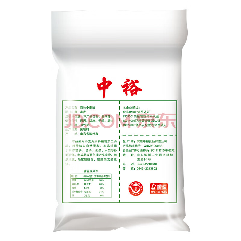 商品名称:中裕面粉 原味小麦粉 通用白面中筋粉 馒头包子饺子手擀面10斤
