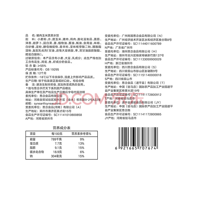 商品名称:思念手打天下系列玉米蔬菜猪肉水饺1.08kg54只 饺子蒸饺煎饺年货送礼