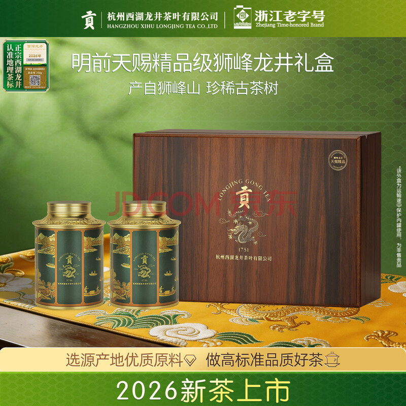 商品名称:贡牌2026新茶上市 绿茶西湖龙井茶天赐精品级100g明前礼盒源头直发