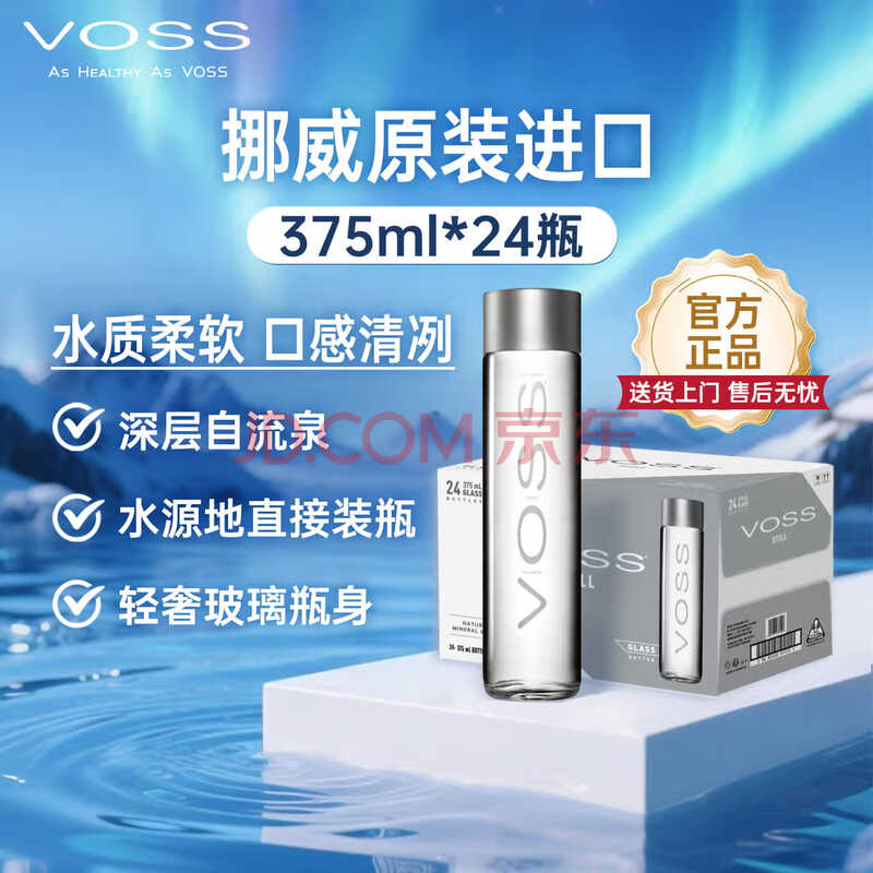 芙丝(VOSS)挪威原装进口饮用天然泉水(深层自流)375ml*24瓶(玻璃瓶)休闲泡茶