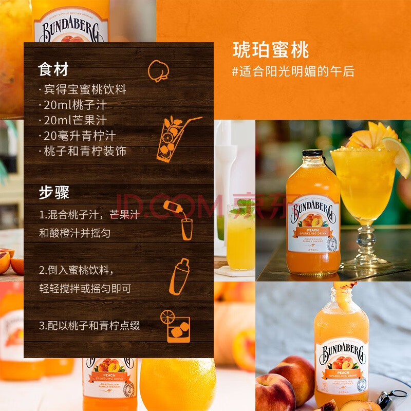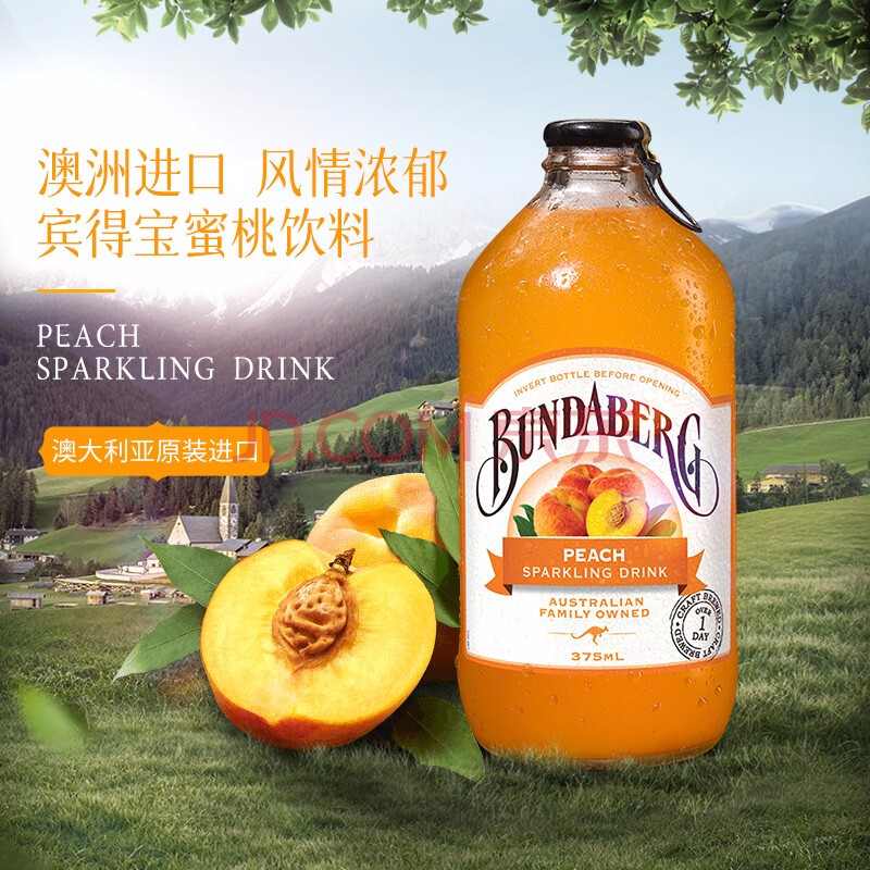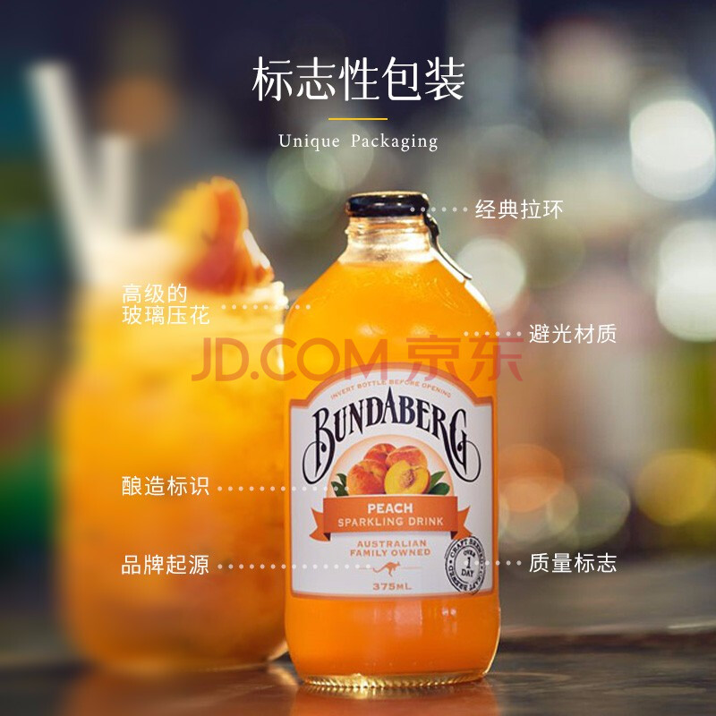 商品名称:宾得宝(Bundaberg)含气蜜桃汁饮料 375ml*6玻璃瓶装 澳州网红年货发酵果汁气泡水