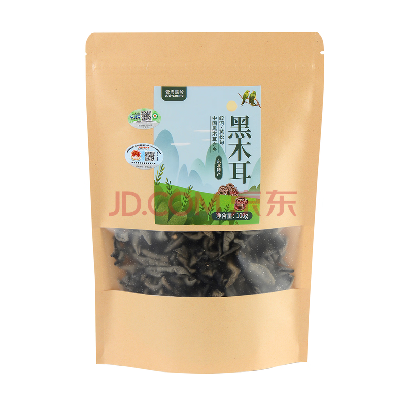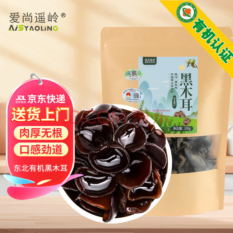 商品名称:爱尚遥岭 有机黑木耳100克干木耳东北特产肉厚无根凉拌火锅食材黄松甸