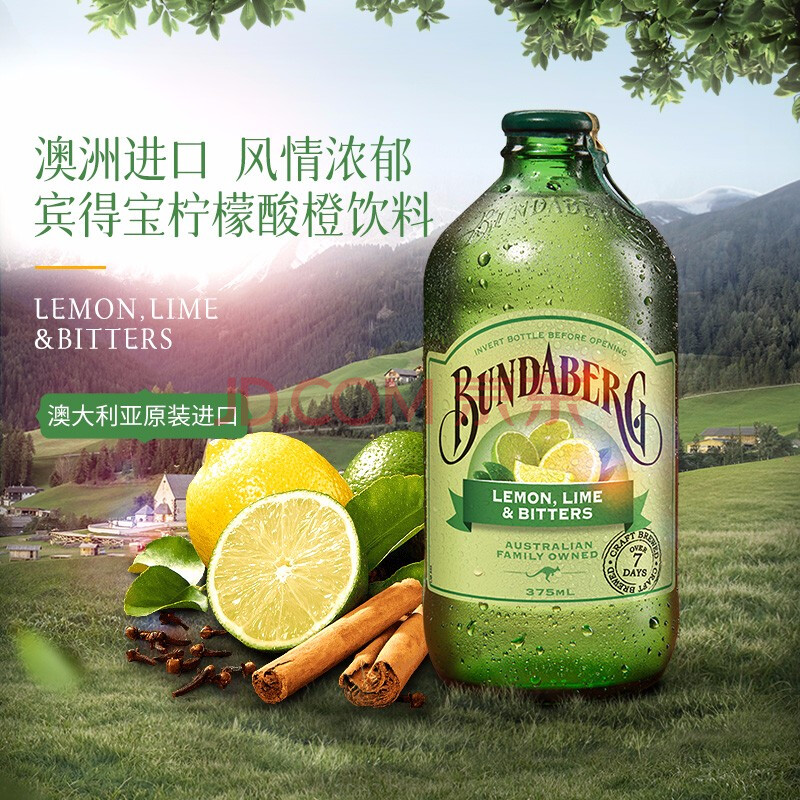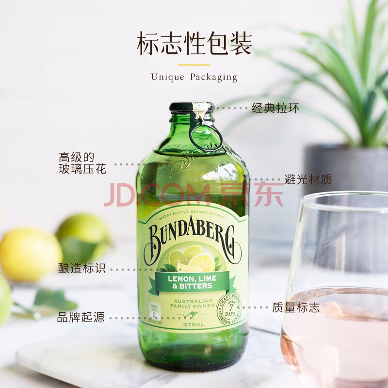 商品名称:宾得宝(Bundaberg)含气青柠汁饮料375ml*6玻璃瓶装 澳州网红发酵果汁气泡水特调酒水