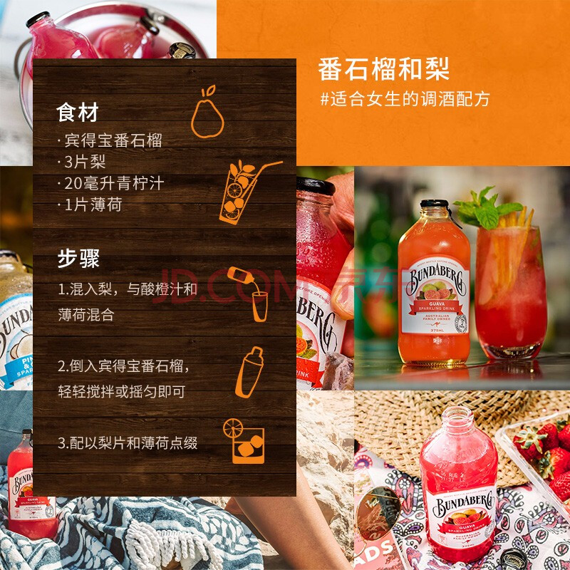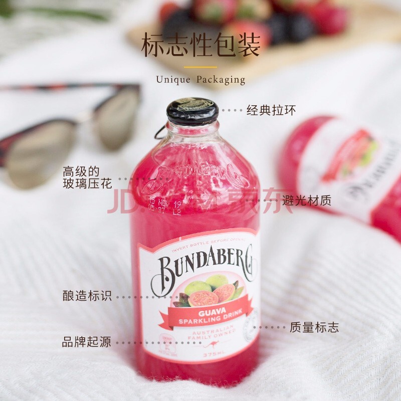 商品名称:宾得宝(Bundaberg)含气番石榴汁饮料375ml*6玻璃瓶装 澳州网红年货发酵果汁气泡水