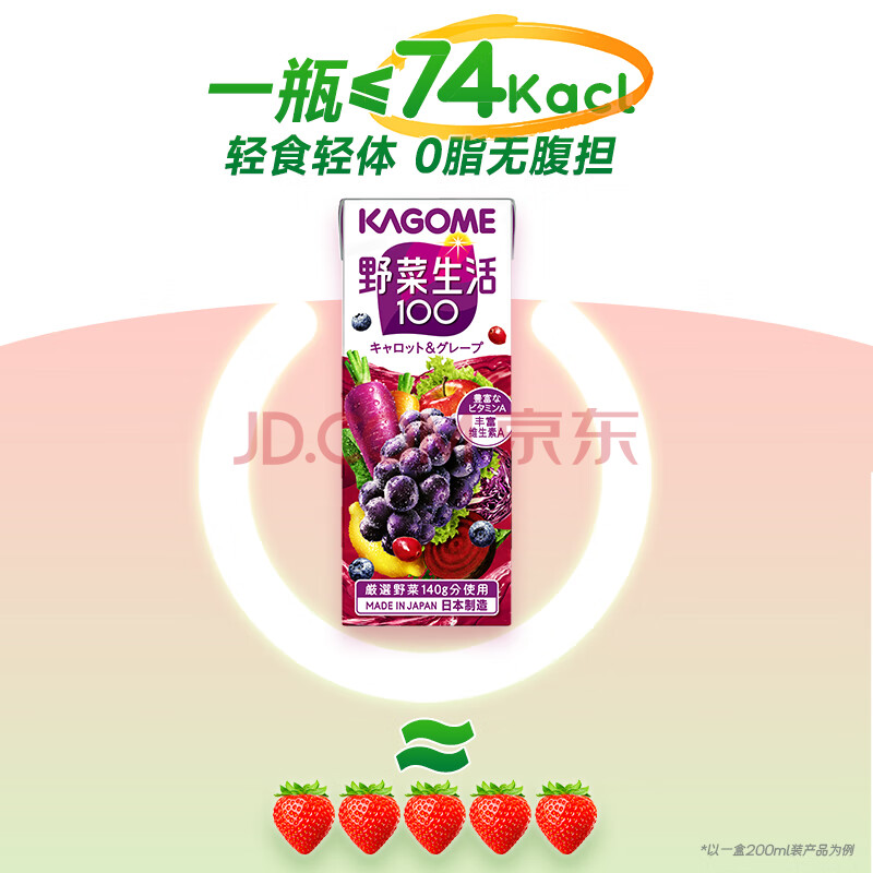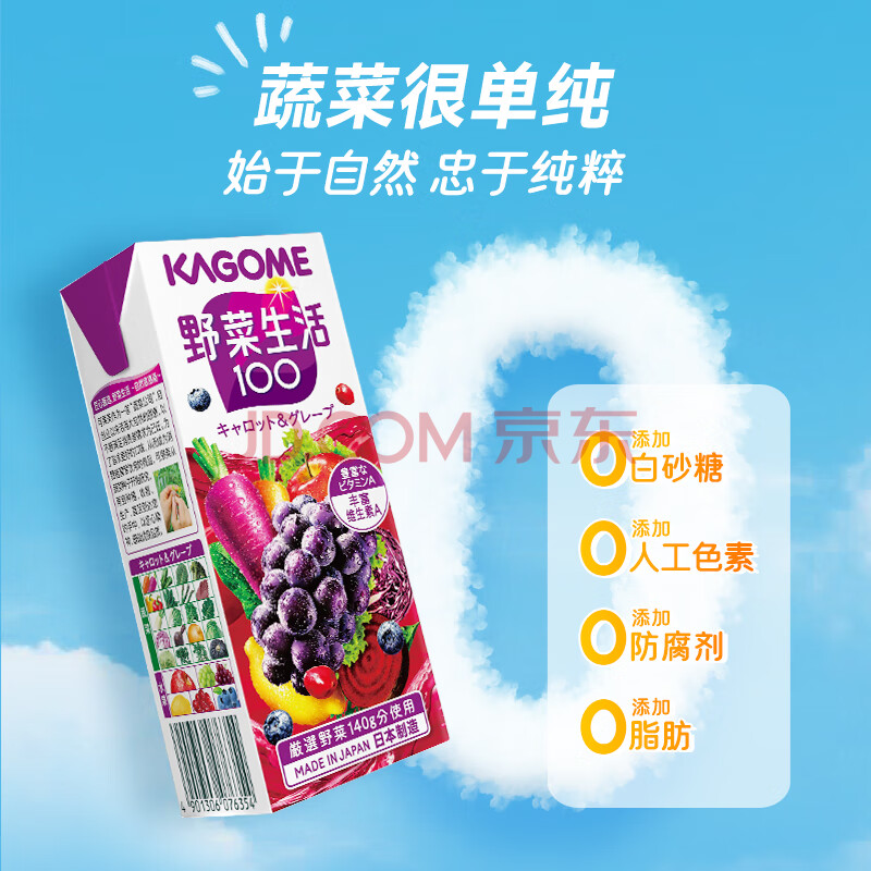 商品名称:可果美(KAGOME)日本进口野菜生活果蔬汁复合蔬菜饮料葡萄儿童果汁200ml*12盒整箱