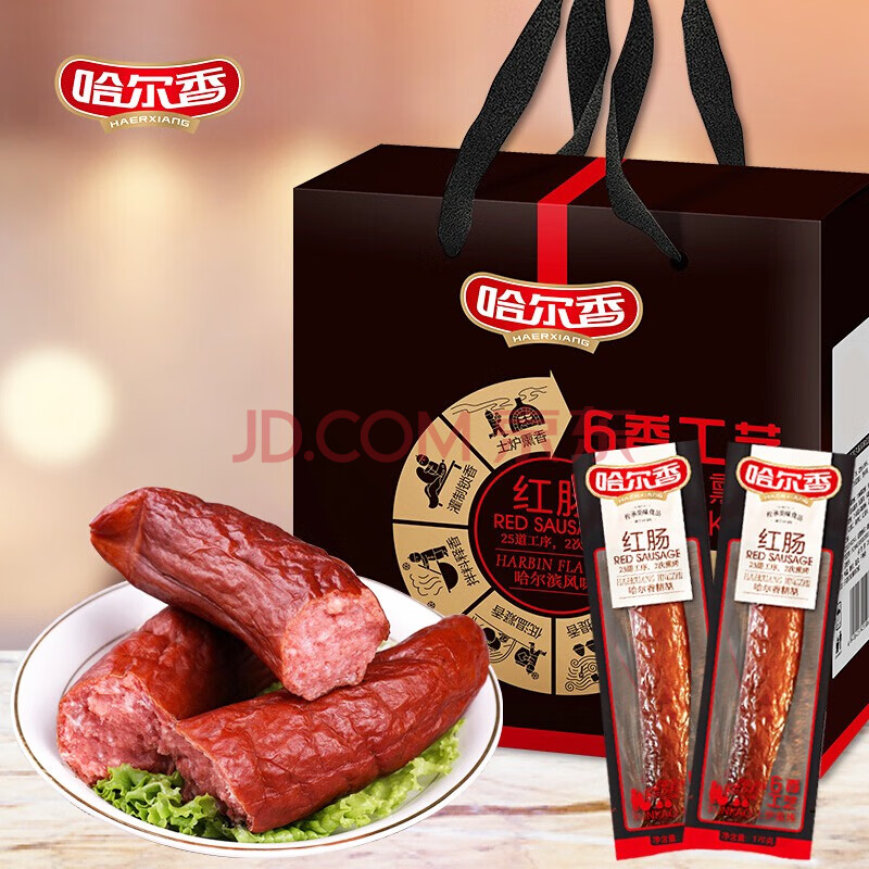 > 哈尔香哈尔滨红肠 熟食香肠 年货礼盒 方便速食东北特产 1200g 节日礼盒