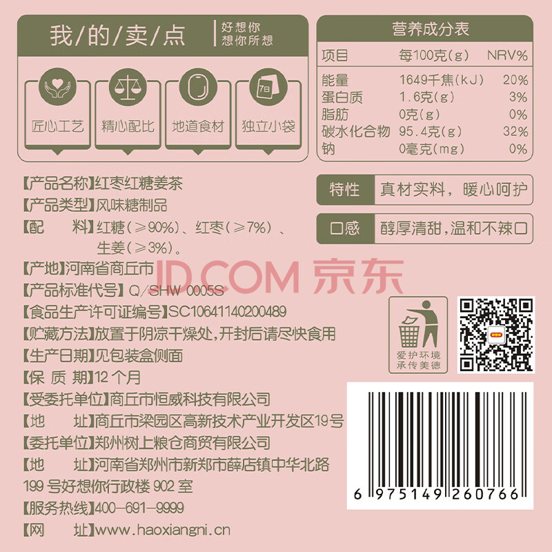 商品名称:好想你 红糖姜茶120g/盒 10小袋 红枣养生茶姨妈茶