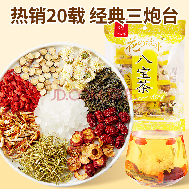 商品名称:忆江南花果茶八宝茶120g金银花菊花枸杞山楂橘皮甘草组合花茶茶叶