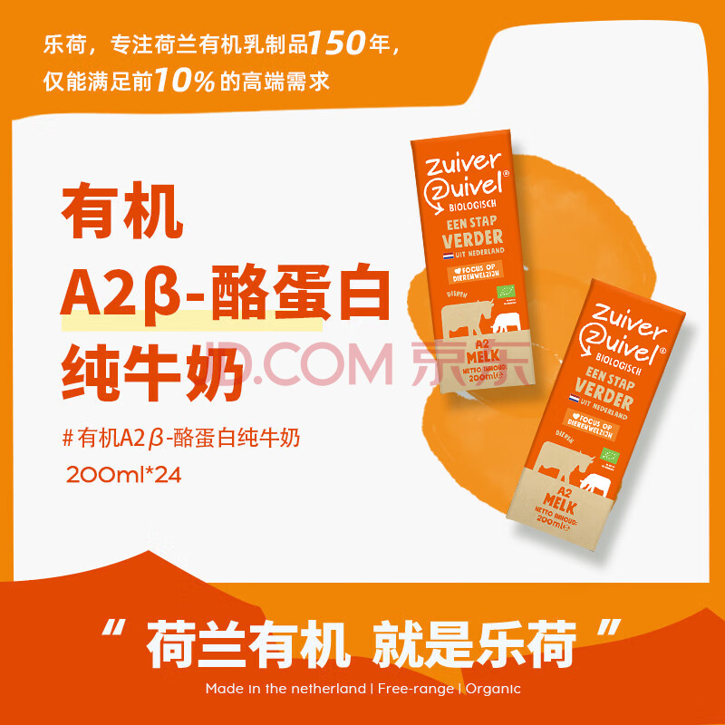 商品名称:乐荷荷兰有机a2β-酪蛋白牛奶200ml*24盒年货 三重有机认证