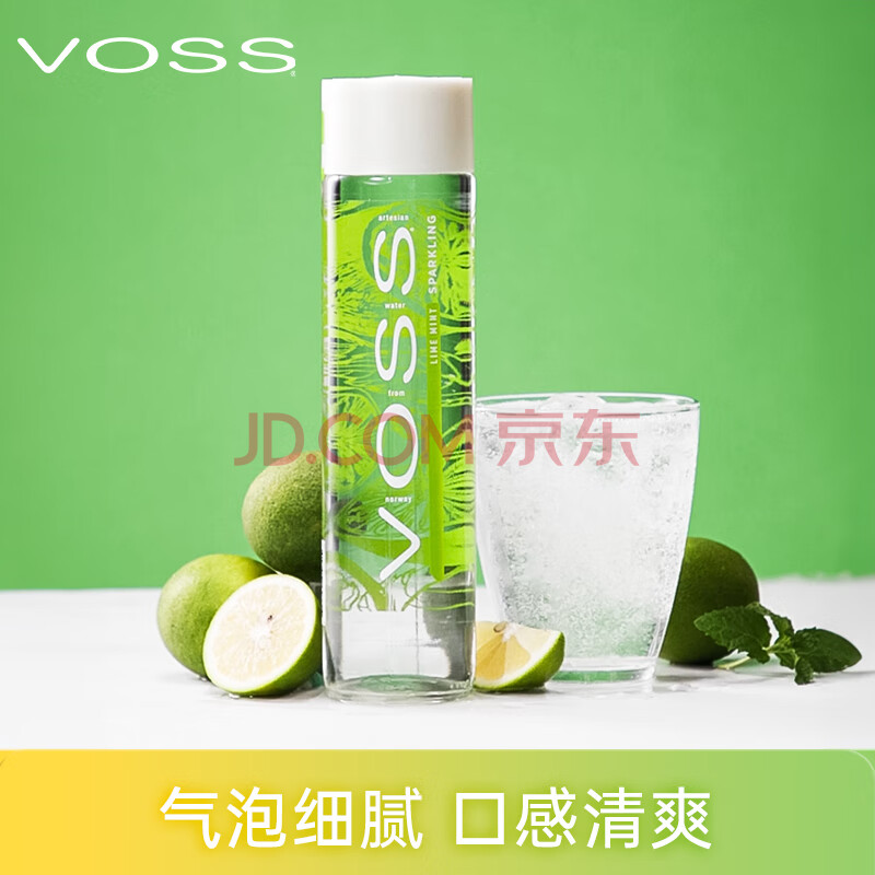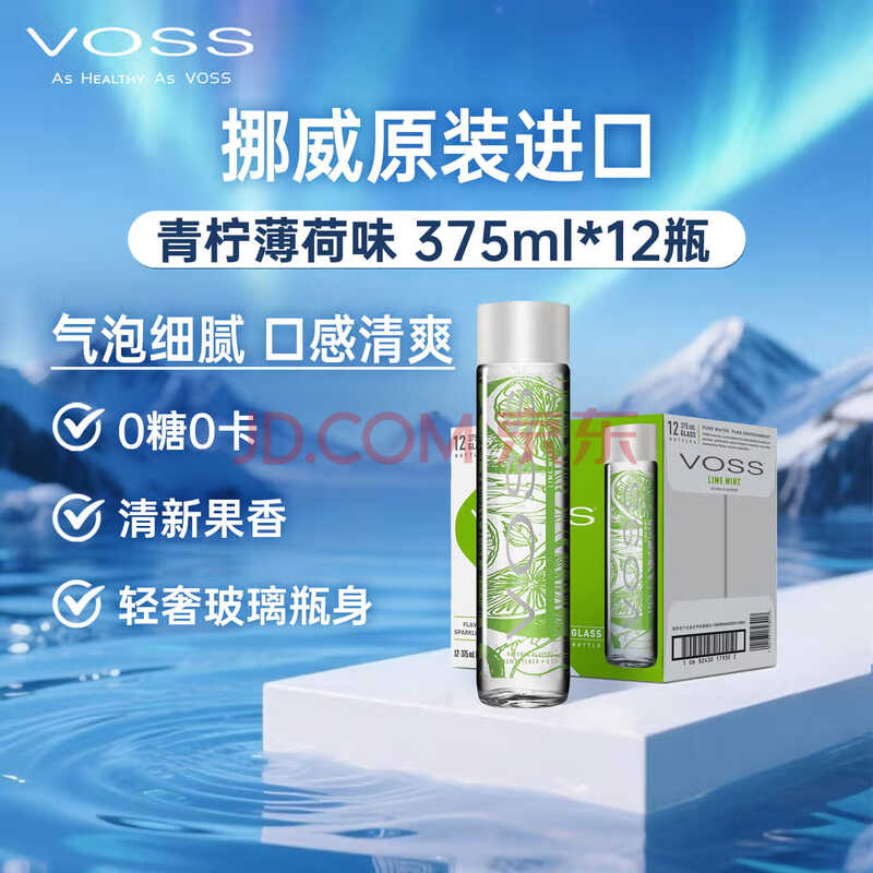 > 芙丝(VOSS)挪威原装进口青柠薄荷苏打气泡水饮料375ml*12瓶(玻璃瓶)年货送礼