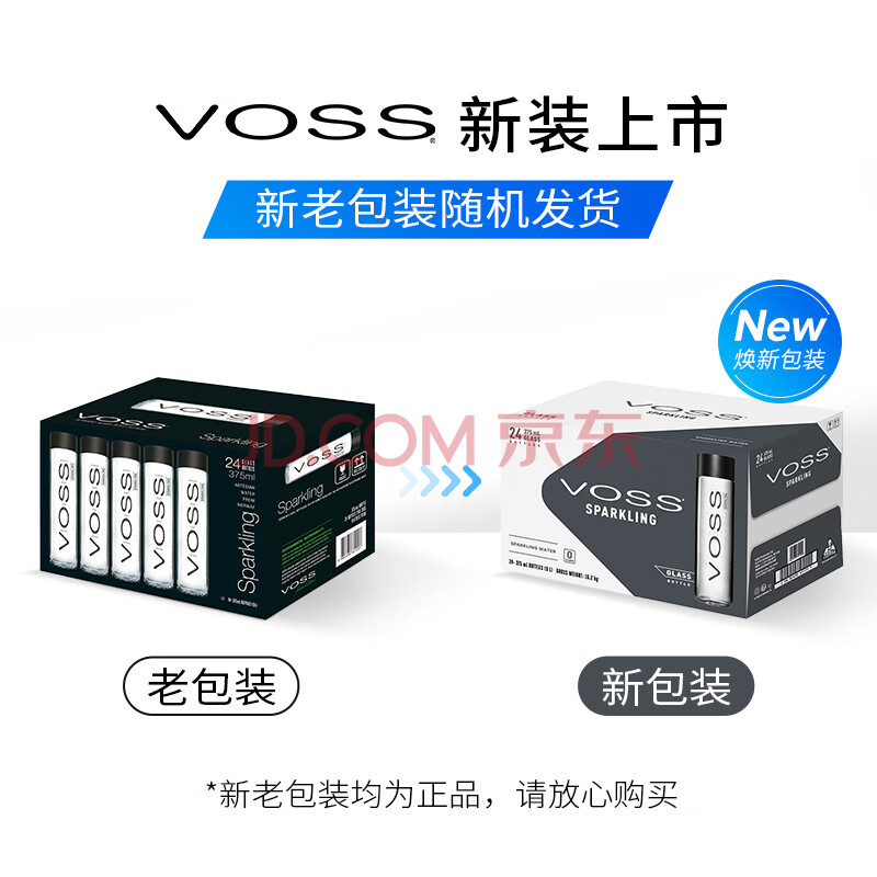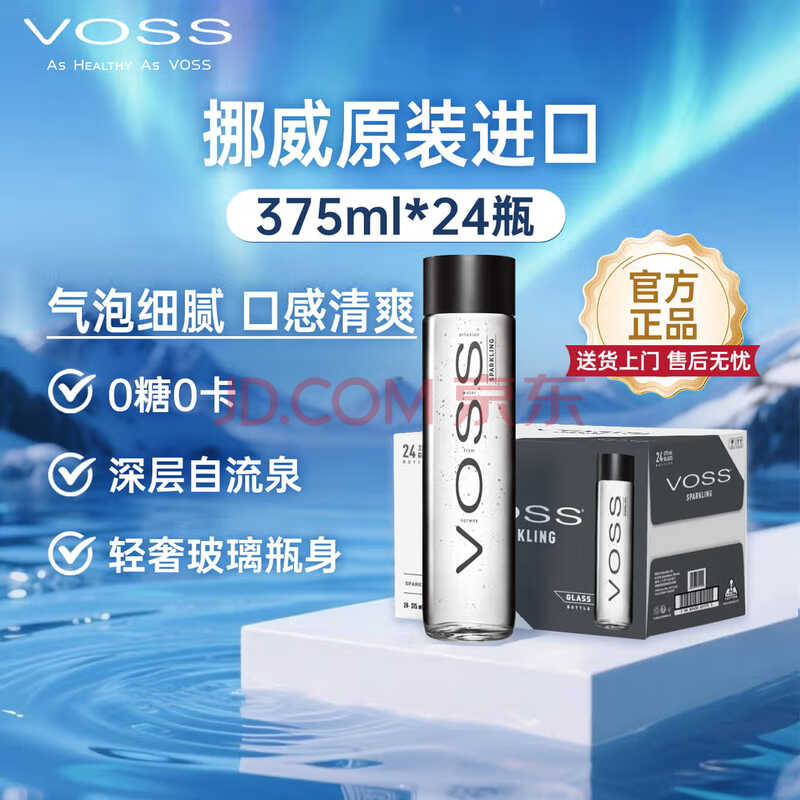 > 芙丝(VOSS)挪威原装进口 苏打水气泡水(含气) 375ml*24瓶(玻璃瓶) 年货送礼