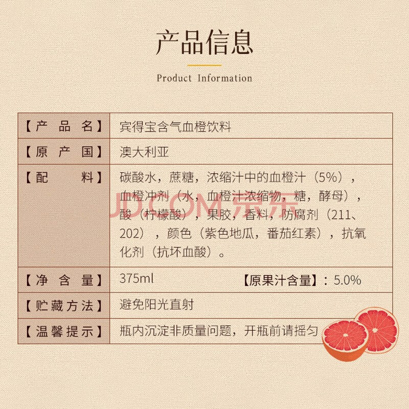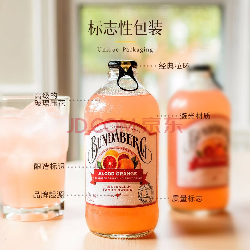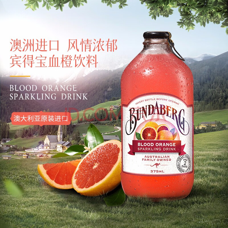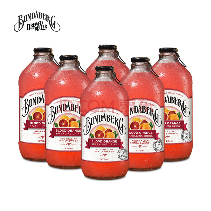 商品名称:宾得宝(Bundaberg)含气血橙汁饮料375ml*6玻璃瓶装 澳州进口年货发酵果汁气泡水
