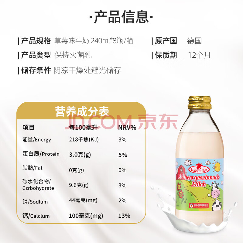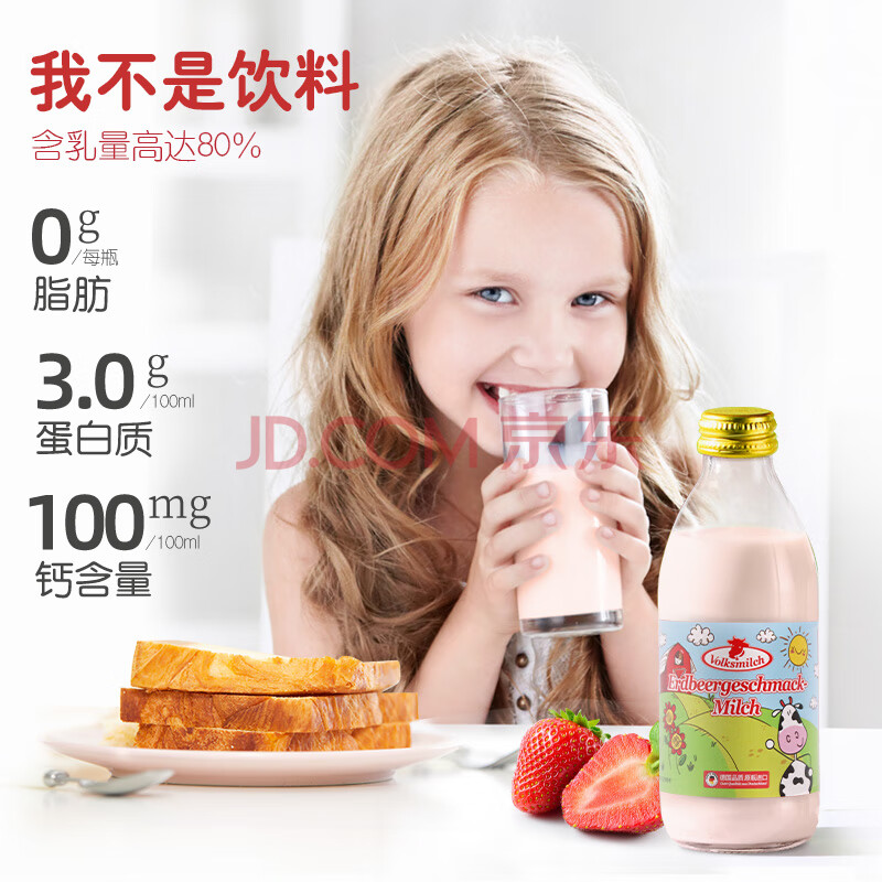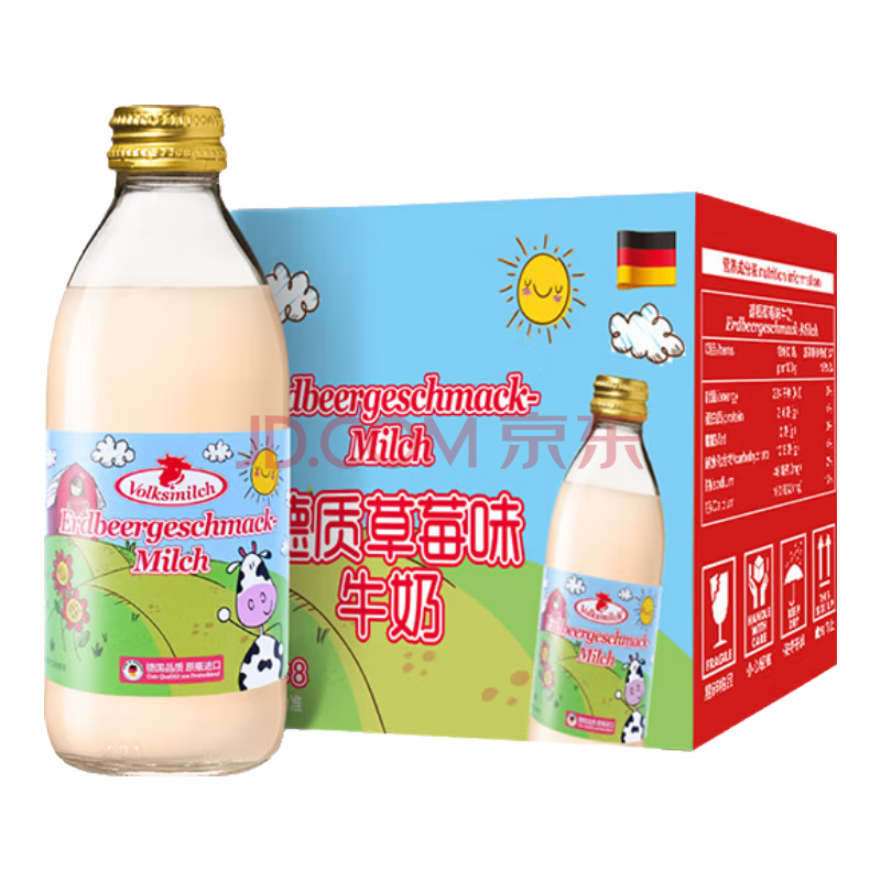 商品名称:德质Volksmilch草莓牛奶240ml*8原瓶进口牛奶 0脂肪草莓奶