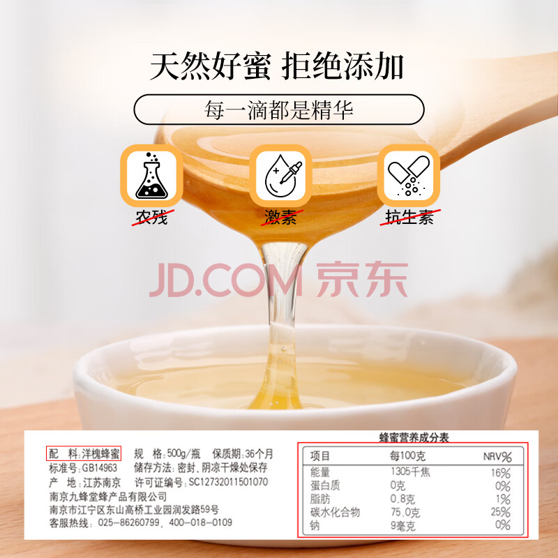 商品名称:九蜂堂 洋槐蜂蜜500g 成熟蜜牛奶麦片伴侣孕妇儿童天然0添加饮料补气血