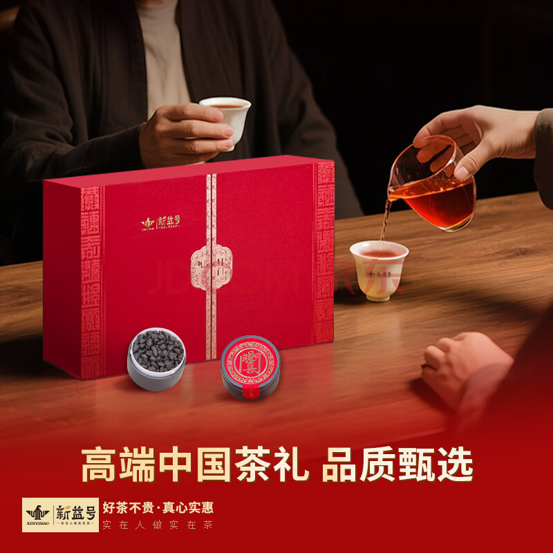 > 新益号茶叶普洱茶熟茶 十五年老班章糯米香碎银子古树茶化石礼盒装