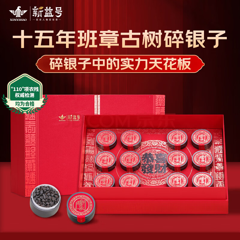 商品名称:新益号茶叶普洱茶熟茶 十五年老班章糯米香碎银子古树茶化石礼盒装