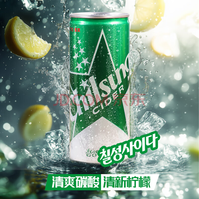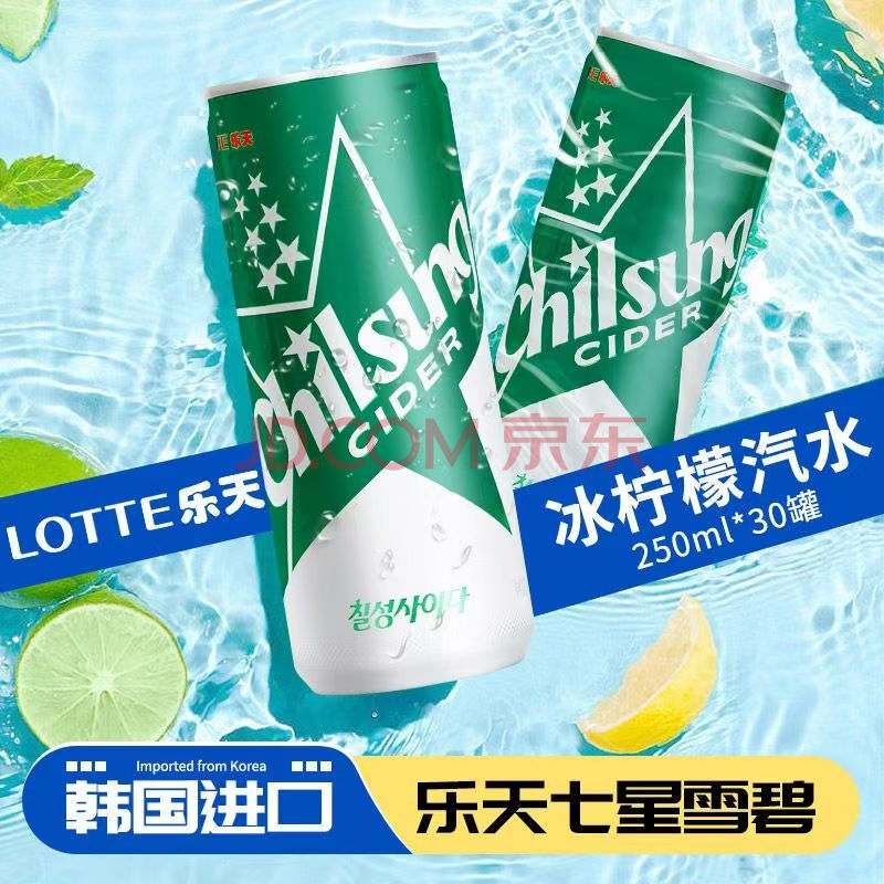 商品名称:乐天 (LOTTE) 七星冰柠檬味碳酸汽水0脂气泡清爽冰镇解渴夏日必备 韩国原装