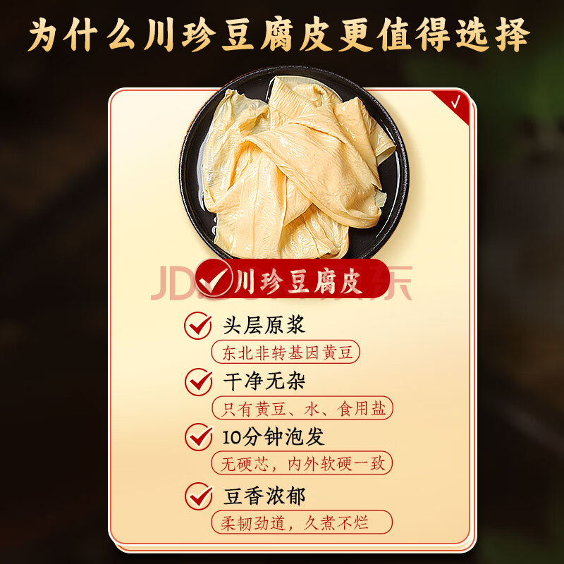 商品名称:川珍豆腐皮200g 【易泡发】油豆皮干豆皮豆制品南北干货火锅串串食材