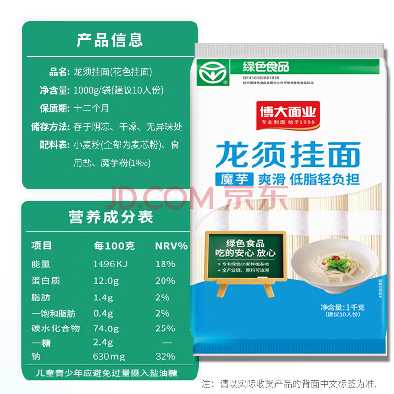 商品名称:博大龙须挂面营养面条 绿色食品原味无添加银丝方便速食清汤挂面1000g
