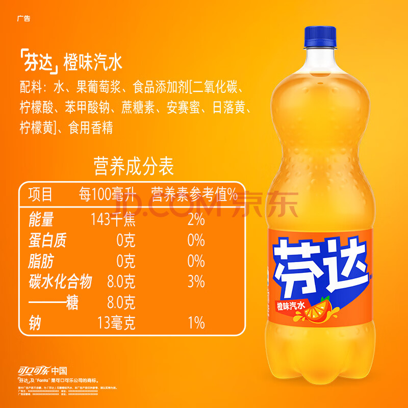 商品名称:可口可乐(Coca-Cola)芬达 Fanta 高考季 橙味 汽水 碳酸饮料 2L*6瓶 整箱装 高分必达