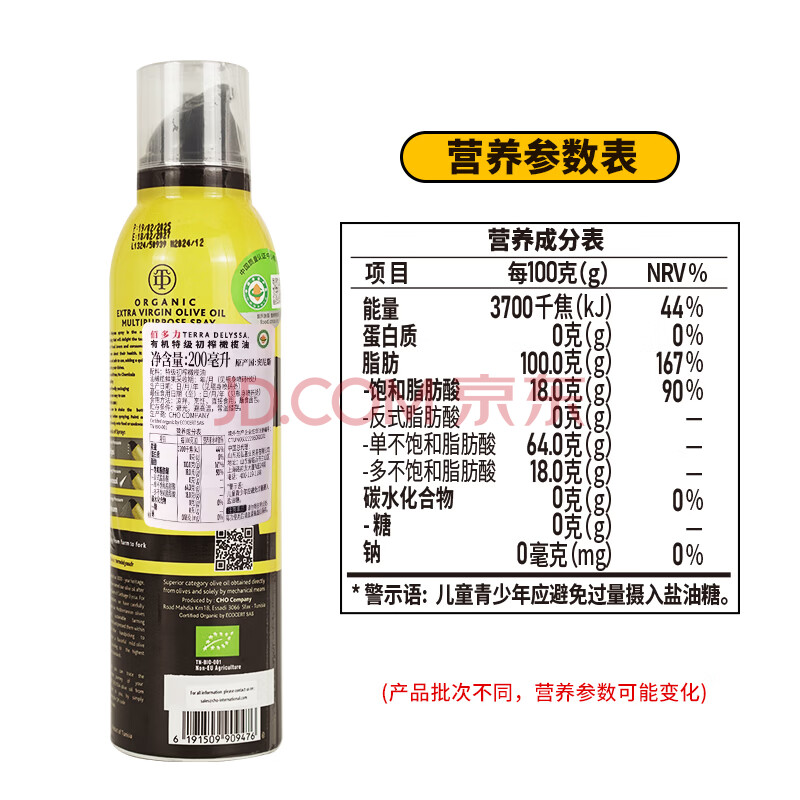 商品名称:佰多力【保真橄榄油】 有机特级初榨橄榄油200ml喷雾橄榄油