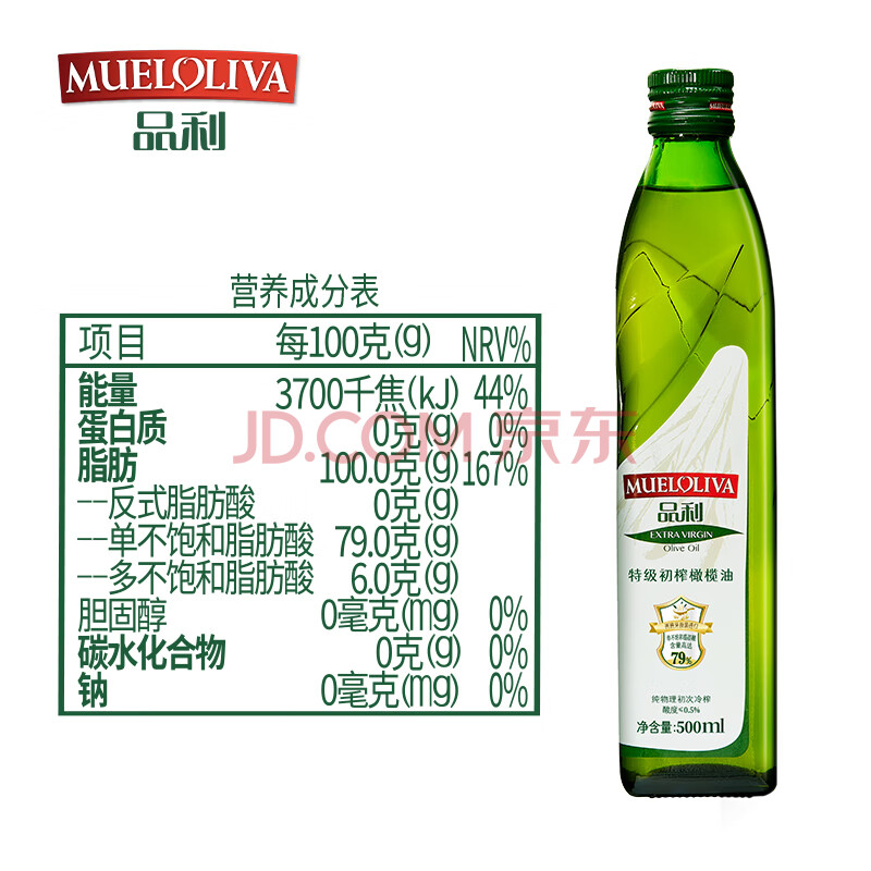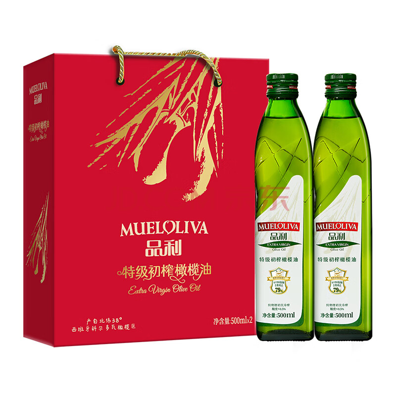 商品名称:品利(MUELOLIVA)【保真橄榄油】特级初榨橄榄食用油500ml*2瓶粮油礼品礼盒送礼
