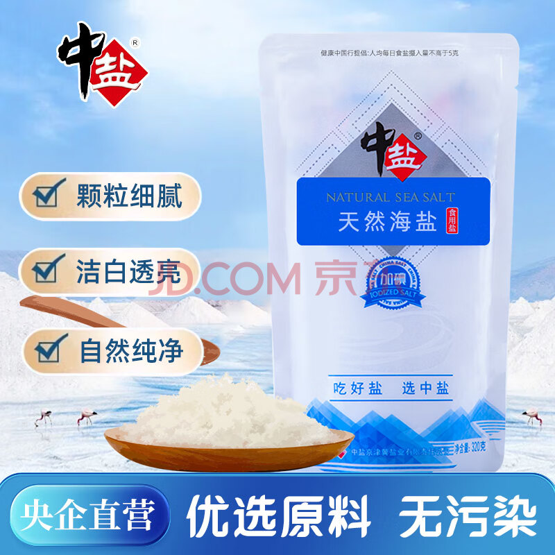 > 中盐 天然海盐320g【加碘】食用盐 京东自营 自然纯净 吃好盐选中盐
