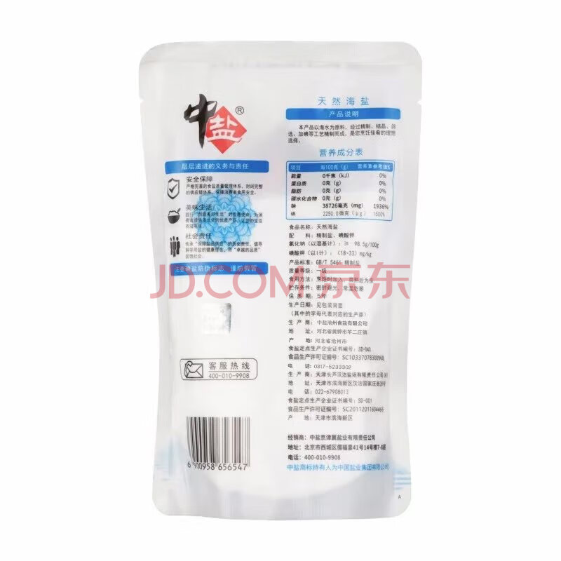 商品名称:中盐 天然海盐320g【加碘】食用盐 京东自营 自然纯净 吃好盐选中盐