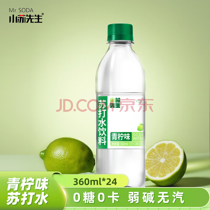 商品名称:小苏先生 弱碱性无汽青柠味苏打水 零糖零热量户外出游饮料360ml*24瓶
