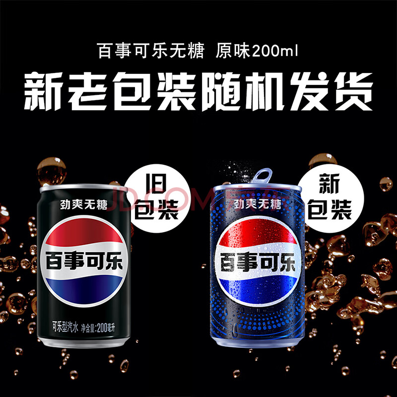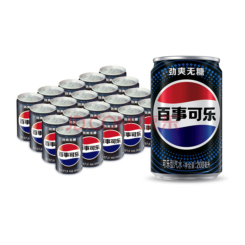 商品名称:百事可乐Pepsi 无糖可乐 碳酸饮料汽水 200ml*20听 迷你罐整箱装