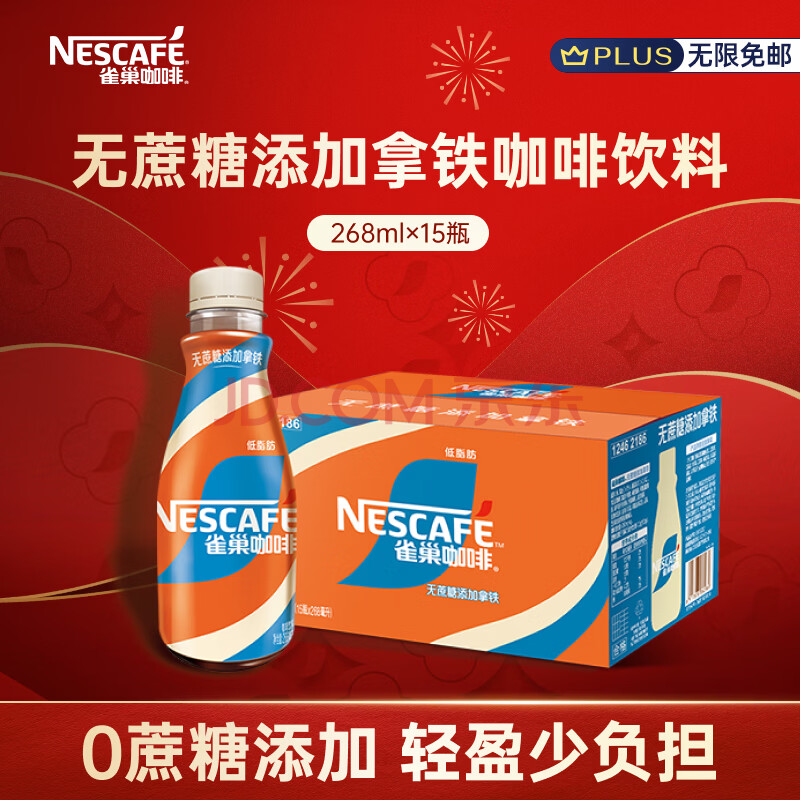 商品名称:雀巢(Nestle)【侯明昊推荐】丝滑拿铁无蔗糖口味 268ml*15瓶-新老包装随机发货