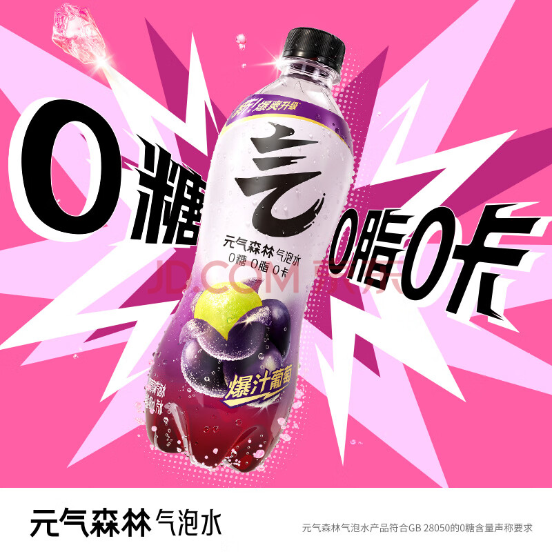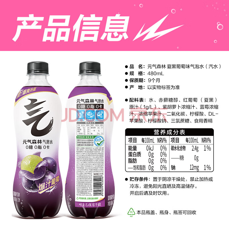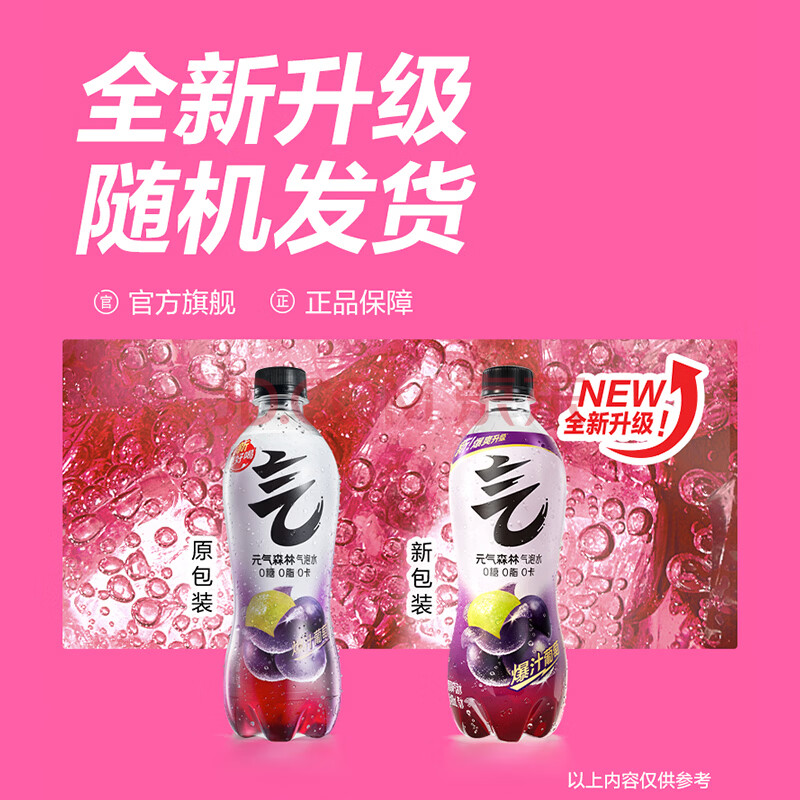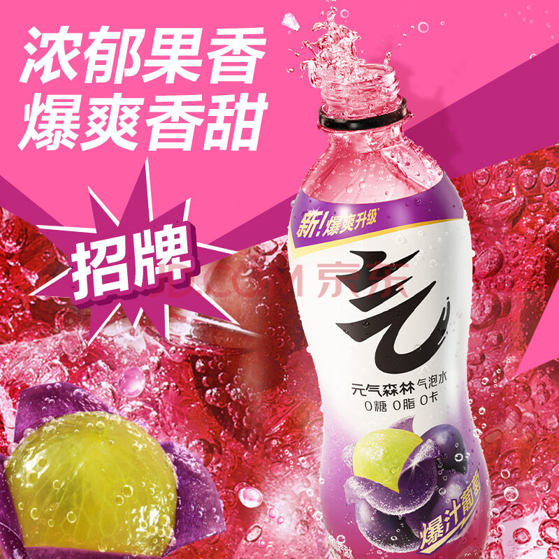 商品名称:元气森林0糖0脂0卡 夏黑葡萄味气泡水 480mL*15瓶 碳酸整箱