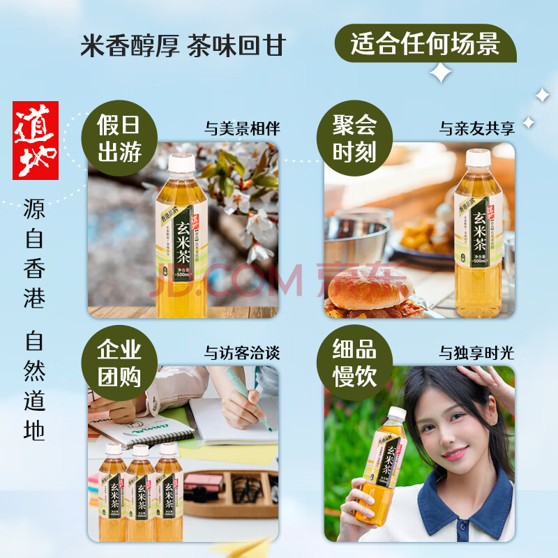 > 道地(TAO-TI)尚品系列 玄米茶0糖0卡0脂肪0热量绿茶玄米茶 500ml*15瓶整箱