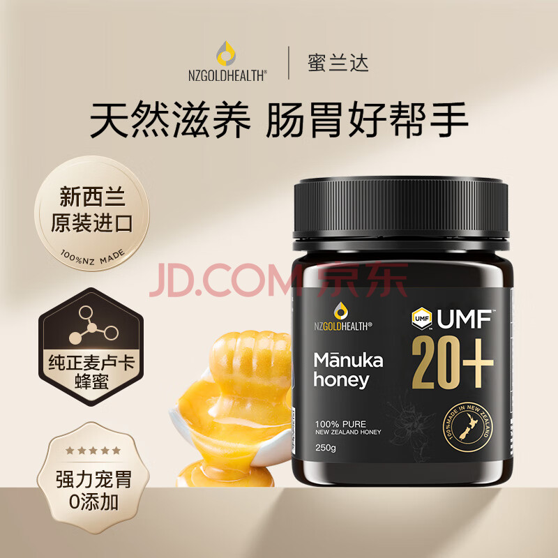 商品名称:蜜兰达(NZGOLDHEALTH)新西兰原装进口 麦卢卡蜂蜜UMF20+250g 天然滋补品送长辈节日礼品