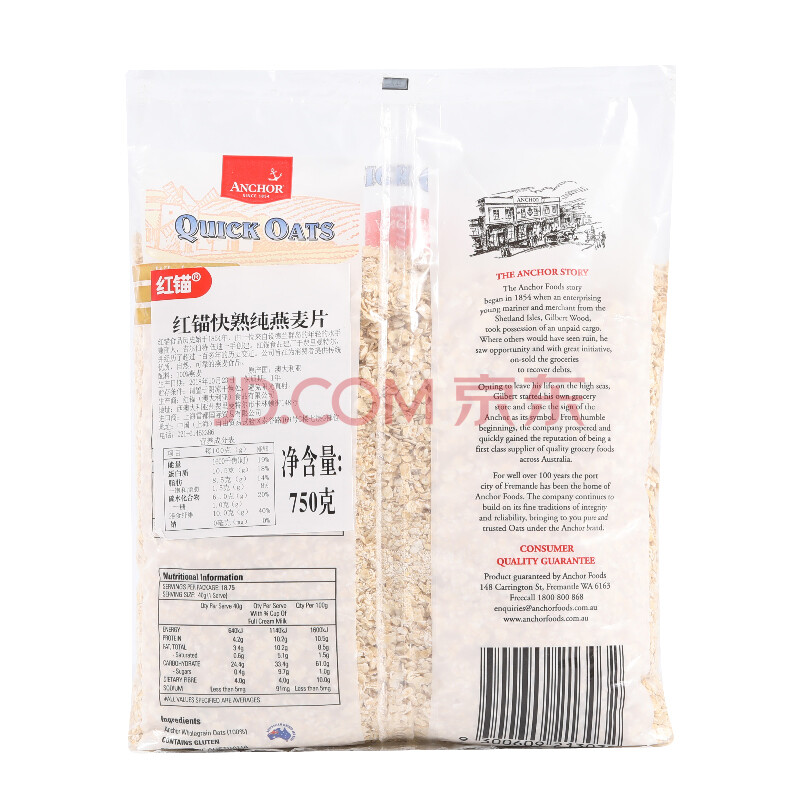 商品名称:红锚红锚澳洲原装进口燕麦片 快熟早餐麦片 澳洲原产健康谷物 750g