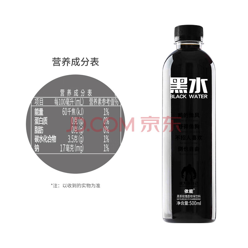商品名称:依能黑水 玫瑰荔枝味饮料 个性饮品 500ml*15瓶 整箱装