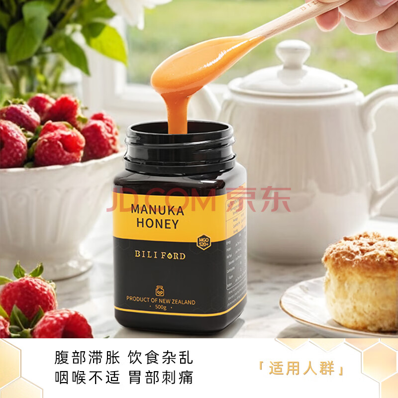 商品名称:比立福特(BILI FORD)麦卢卡蜂蜜15+ MGO520+ 500g (新西兰原装进口)天然礼品送人送礼