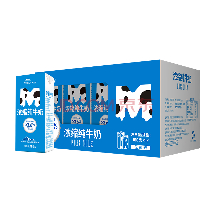 商品名称:天润新疆浓缩全脂早餐纯牛奶MINI砖180g*12盒(无添加剂) 礼盒装