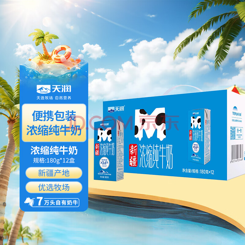 天润新疆浓缩全脂早餐纯牛奶MINI砖180g*12盒(无添加剂) 礼盒装