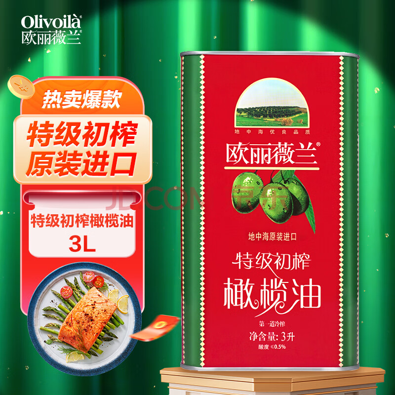 商品名称:欧丽薇兰 Olivoila 食用油 保真 特级初榨橄榄油红装3L(地中海原装进口)