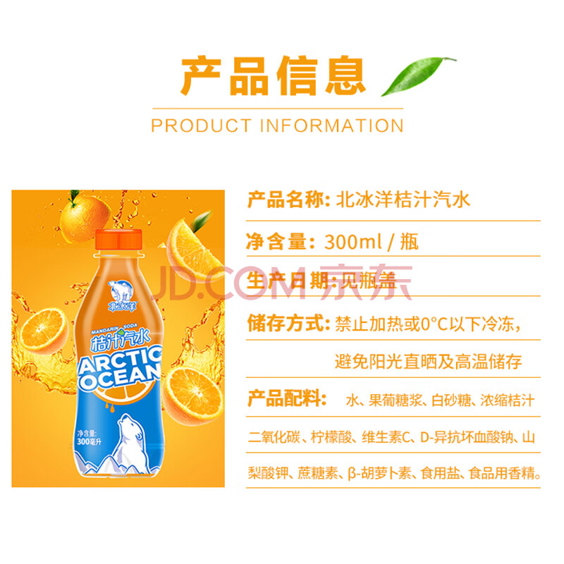 商品名称:北冰洋 桔汁汽水 经典果汁 碳酸饮料气泡饮料 便携瓶300ml*24瓶/整箱装