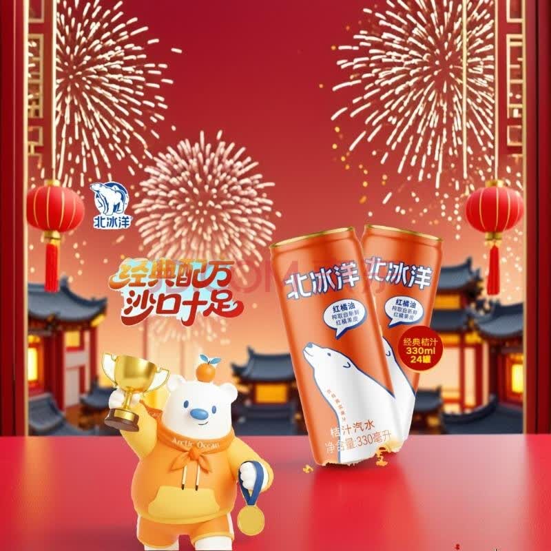 > 北冰洋桔汁汽水330ml*24罐果汁碳酸饮料整箱装经典汽水火锅聚餐经典装